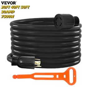 VEVOR Heavy Duty Generator Extension Cord 20FT 40FT 50FT 30Amp (Color: Silver 50FT 30A)